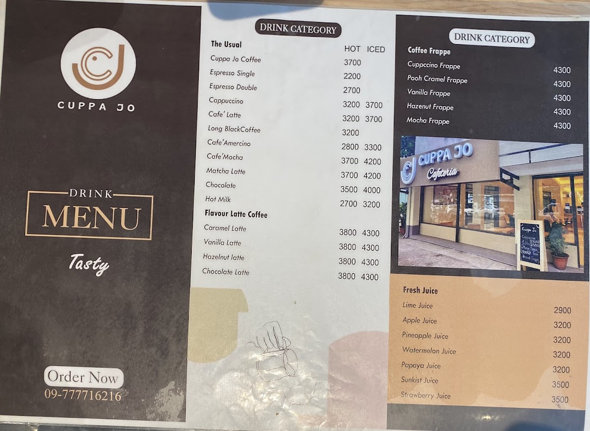 For inquiries, you can reach them at +95 9 777 716216. Dive into a brunch or coffee date at Cuppa Jo—you won’t be disappointed!