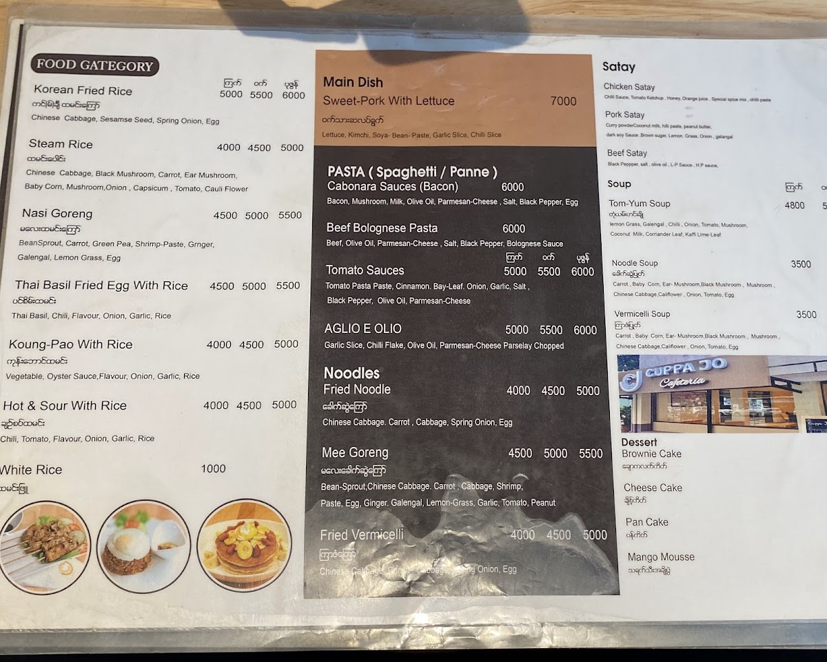 Welcome to Cuppa Jo Coffee Shop & Cafeteria, a delightful gem tucked away on Ma Hlwa Gone St, Kyauk Myaung Street, Yangon, Myanmar. This cafe is not just a place to grab a quick coffee; it’s an experience where ambiance meets flavor, making it perfect for coffee lovers, casual hangouts, or even a cozy date.